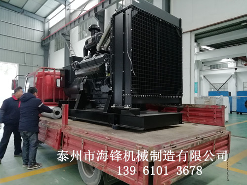 某單位在我公司選購了一臺600KW上柴柴油發電機組,車間技術人員已安裝調試完畢。裝車準備發往需方指定地點,如圖: